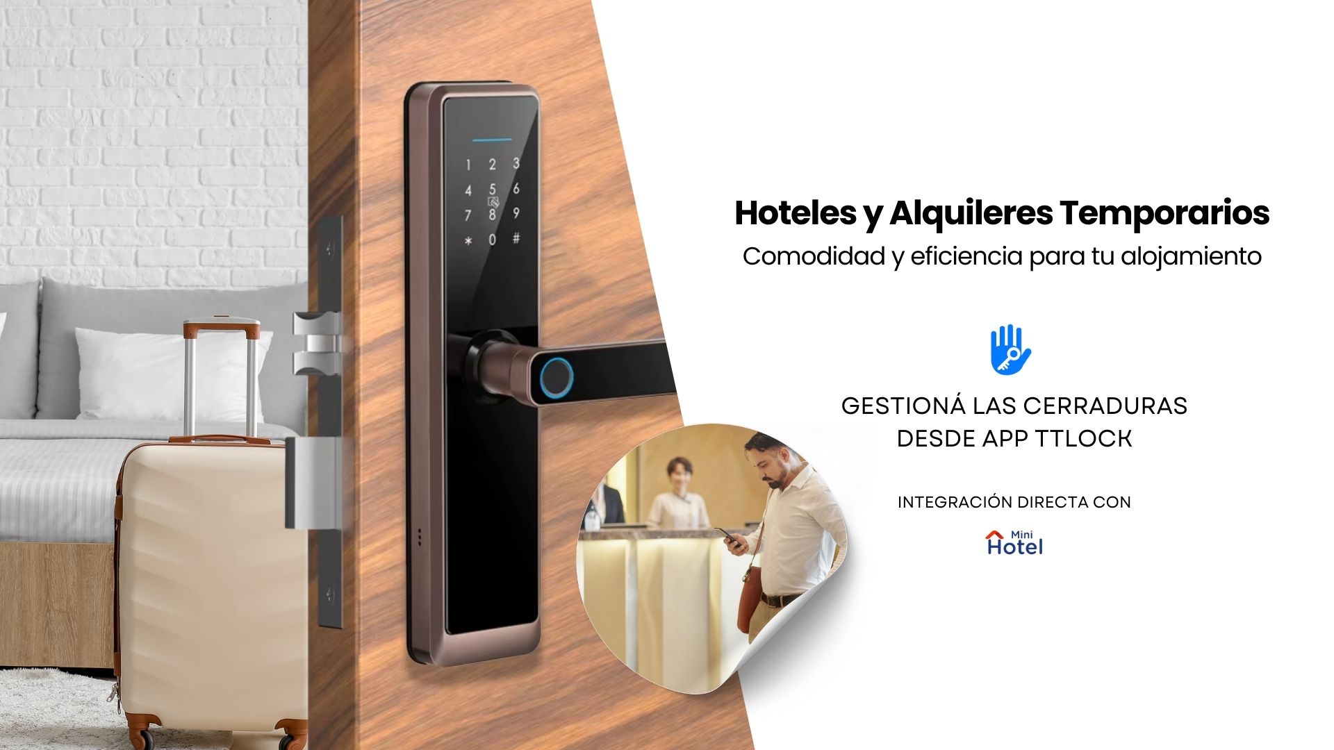 - Compatibilidad con Mini Hotel PMS: Contamos con integración con Mini Hotel PMS, lo que permite gestionar reservas de manera automática y enviar códigos de acceso a tus huéspedes, sin complicaciones.